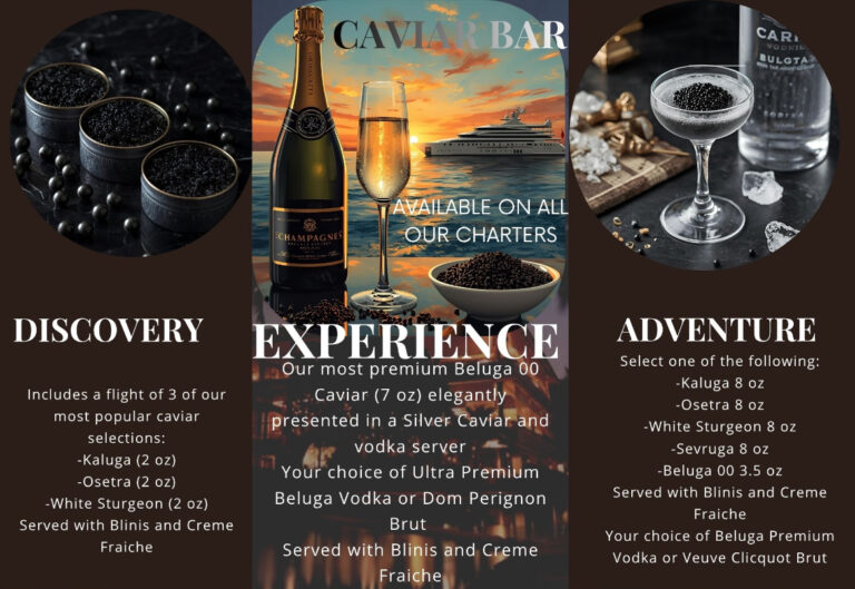 - Available on all half-day or full-day charters, aboard any of our yachts