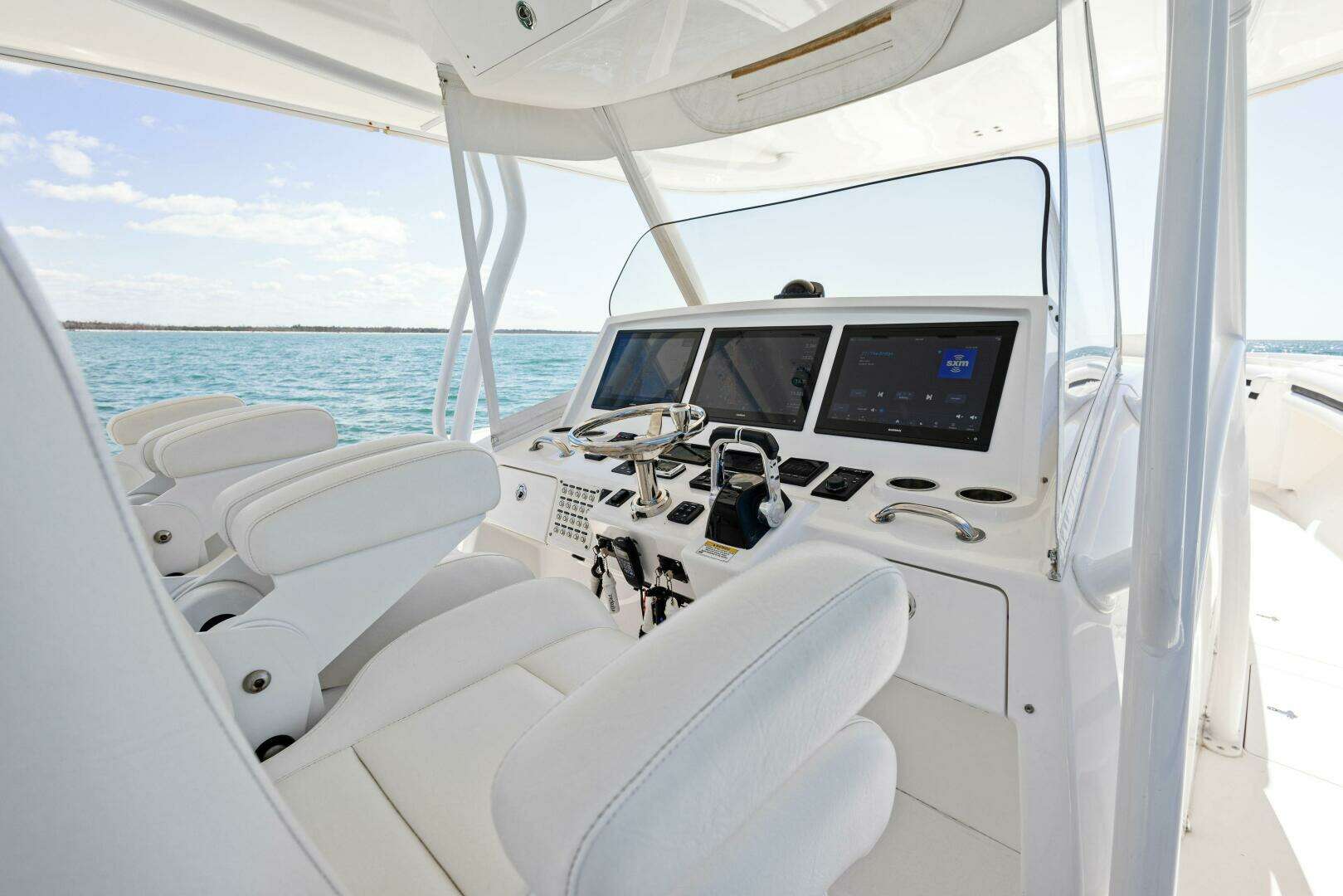 •  Climate-Controlled Helm: The bridge deck is fully enclosed and air-conditioned, allowing you to escape the Florida humidity without losing the view.